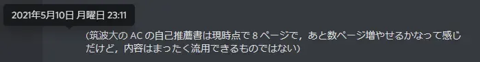 AC 入試に提出する自己推薦書は,5 月には書き始めていました。(当時は落ちたあとにどうするか,東工大 AO に出すか?などを迷っていた)